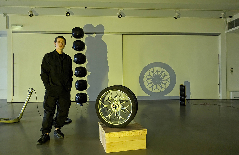 Another sculpture in Nervous Thrasher bore a hyperrealistic resemblance to a car tyre. It was engineered to be light enough that it could become airborne, but had enough heft to rip through air like a muscle car – a nod to American Midwestern garage culture, where gearheads rebuild engines and modify automobiles to craft customised high-performance vehicles, as well as the “Mongkok culture” that is “alien” to the artist.