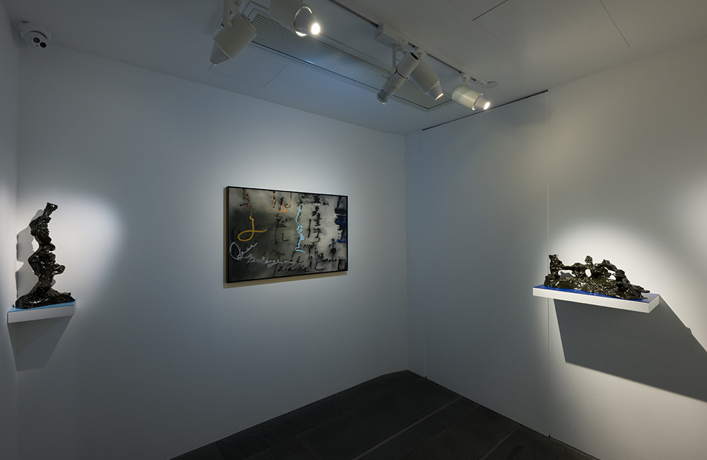 CHT: At the entrance of the exhibition, you displayed some ink on paper, followed by what could be conceived as an installation, comprising different sizes of paintings and sculptures. What guided your choices? KC: With this exhibition, my intention was to summarise what I have done so far and explore future directions. I wanted to investigate how to blend Chinese and western art, and whether there is a way to find a middle ground between the two. It was also an opportunity to delve into the exploration of different media and their unique characteristics. I guess I am returning to a more traditional practice and searching for the core of what I believe in. I ask myself the fundamental question: what shall I do as a painter? This choice may seem limited and perhaps old-fashioned compared to new technologies and knowledge-based practices, but I still hold on to that artistic myth that has been with us for thousands of years.